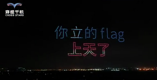 11月7日EDG夺冠晚间,无人机表演企业——穿越千机在广州用1000架无人机将EDG战旗、冠军奖杯、网友立的EDG夺冠FLAG等飞上天,来庆祝这个“时常8强,偶尔无缘总决赛”的战队夺冠荣耀时刻。绝地反杀的EDG的确值得全网“疯狂”,对于全网年轻用户来说,这个夜晚冠军属于中国战队、属于EDG。